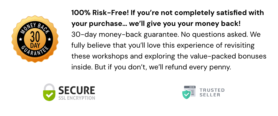 ✔ Expert bonuses (worth thousands) masterclasses, courses and tools to deepen the work